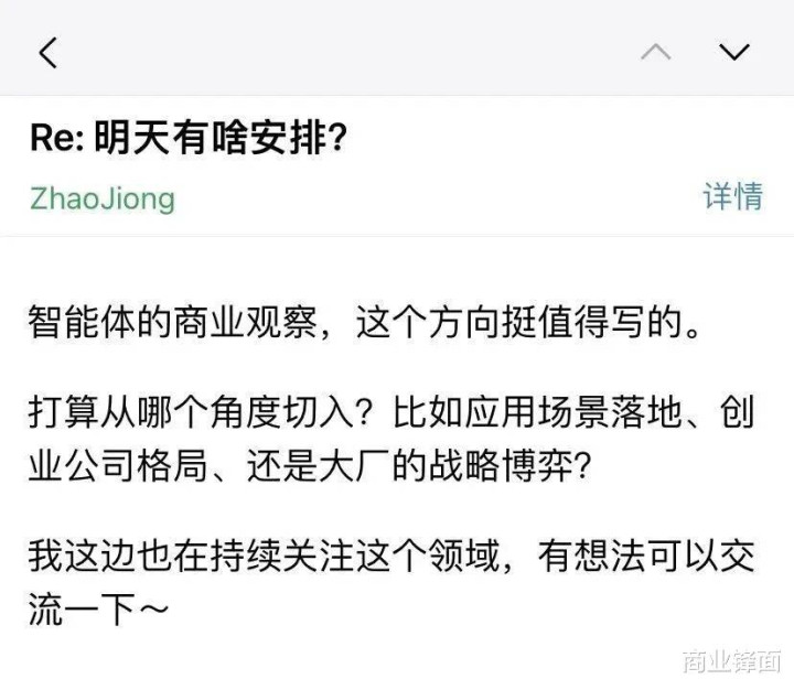 我同过其后回话,他准备写一篇对于智能体的交易不雅察著作。