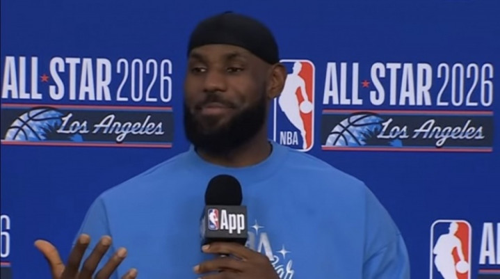 直播吧2月16日讯当天,湖东谈主球星詹姆斯举行了全明星新闻发布会。