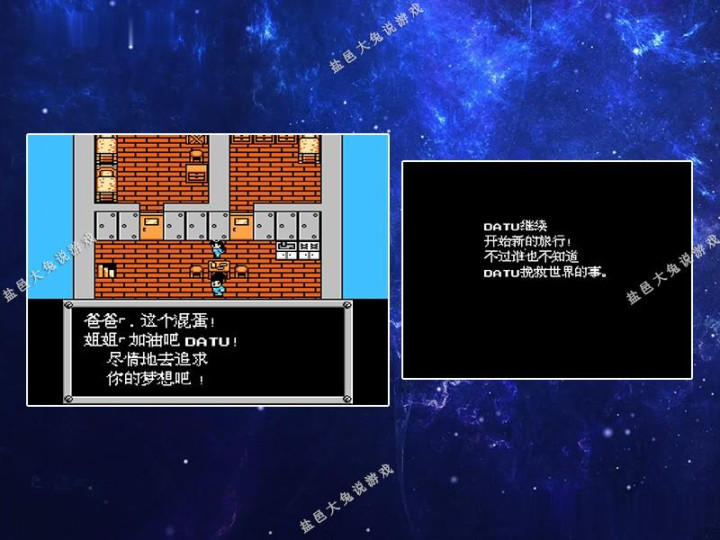 FC《重装机兵》游戏,通关条目并不难,只须和游戏主角的老爸对话并遴荐避让即可;但需要玩家把执时机,若在未完成系列任务前强行避让,将会影响游戏主角英杰豪举的全面展示,以及片尾的玄虚评价。