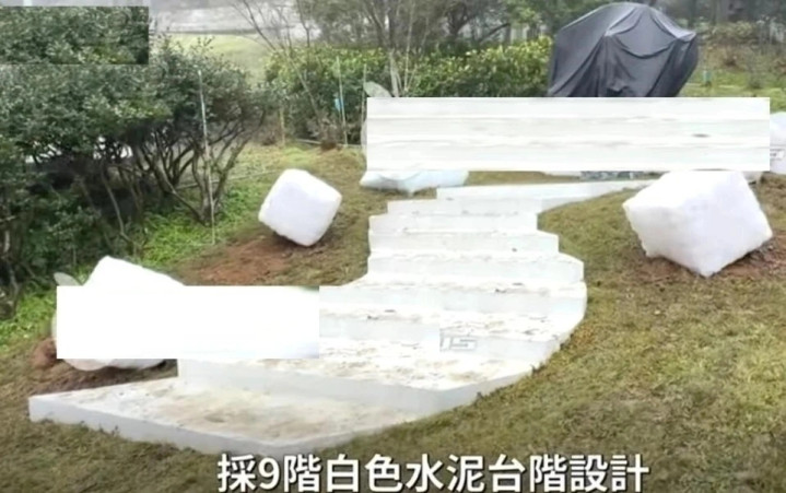 九级S台阶,深灰基座,白色石柱,数字“9”极度重复——韩语的具(구)音发音就是9,这份“隐喻式深情”太浓,仿佛在告诉所有人:大S的终场,不是由她决定的,是由那个叫具俊晔的男人策划收尾的。