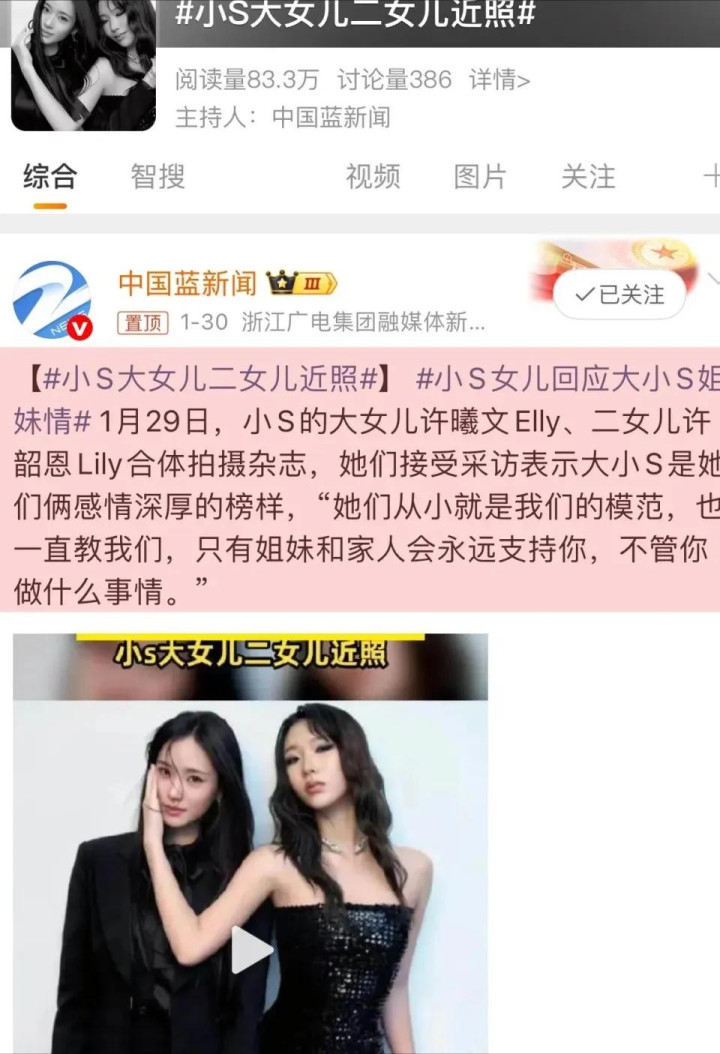母亲节也不见他们,气氛照片中只有S家女人一桌。反倒是小S的两个女儿化身“大小S复刻体”,一套姐妹花大片拍下去,全网点赞刷屏。