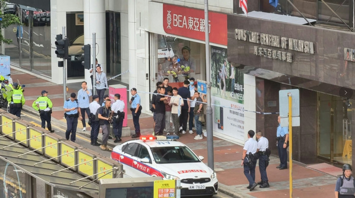 今天(4月10日)中午12时26分,香港警方接报湾仔告士打谈56号东亚银行港湾中心分行发生劫夺案。