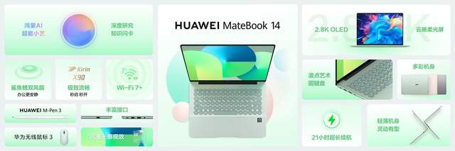 颜值党此次豪阔会被华为MateBook 14 鸿蒙版的遐想精确“狙击”,其整机薄至14.5mm,轻约1.33kg,顺手往包里一塞就能起程,机身微妙加入了鸿蒙智徽视觉标记,合作郊外绿、樱粉金等崭新颜色,质感一刹拉满。