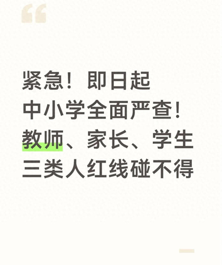 紧要!宇宙中小学迎来最严大排查!淳厚、家长、孩子,这三条红线谁碰谁后悔!莫得法则,不成方圆。可这回的法则,是真带电的!
