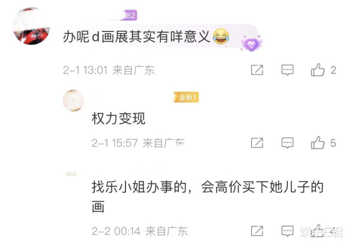 但也有网友认为,这可以是权力变现,找乐小姐办事的,会高价买下她儿子的画。