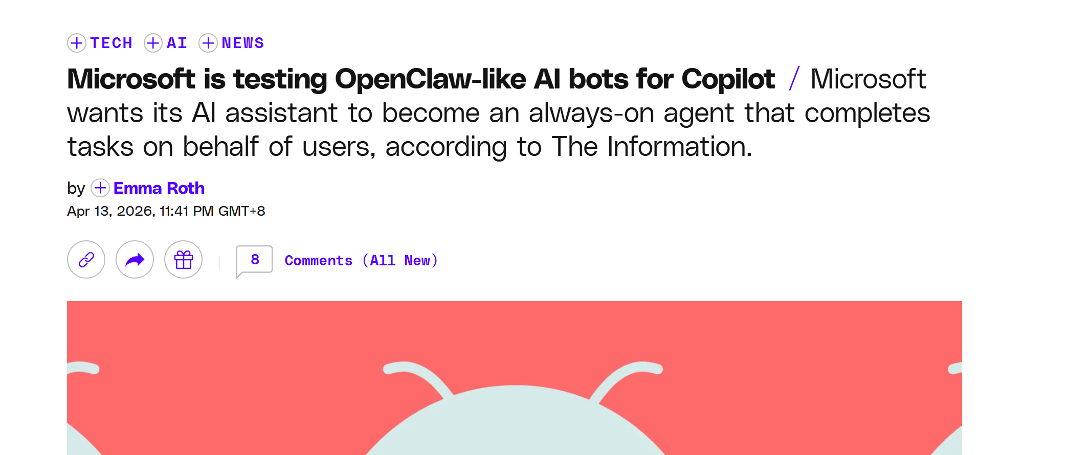 【大众网科技概述报谈】4月14日音书,据The Verge报谈,微软公司证据,正研发一款类OpenClaw智能体居品,并宗旨将有关功能整合进Microsoft 365 Copilot,面向企业客户推出,以更完善的安全管控机制,助力企业办公智能化升级。